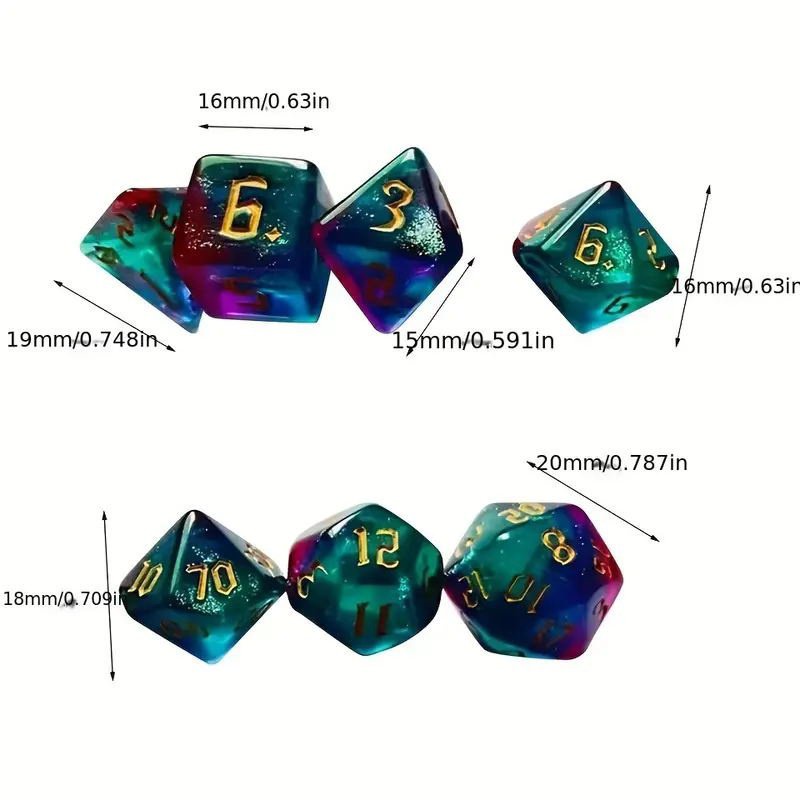 PATRICIA16J Dados Poliédrais Glitter Iridescente D4 D6 D8 D10 DND Entusiasta RPG Jogos De Tabuleiro De Aventura Jogo De Mesa De Festa Familiar Polihedrais De 7 Morces