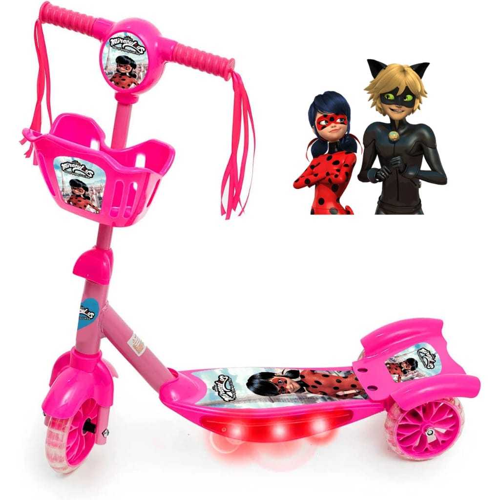 Patinete Infantil 3 Rodas Miraculous Cat Musical e Luzes ROSA