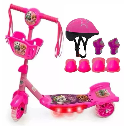 Patinete Patrulha Canina Meninos Meninas Patinete Infantil Musical 3 Rodas Cesta E Luzes Até 35kg