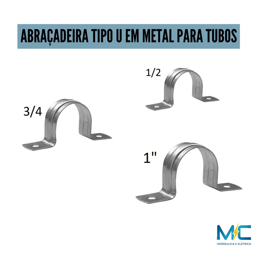 Abraçadeira Tipo U em Metal Para Tubos (Medidas 1/2 - 3/4 - 1") C/ 100 Unidades
