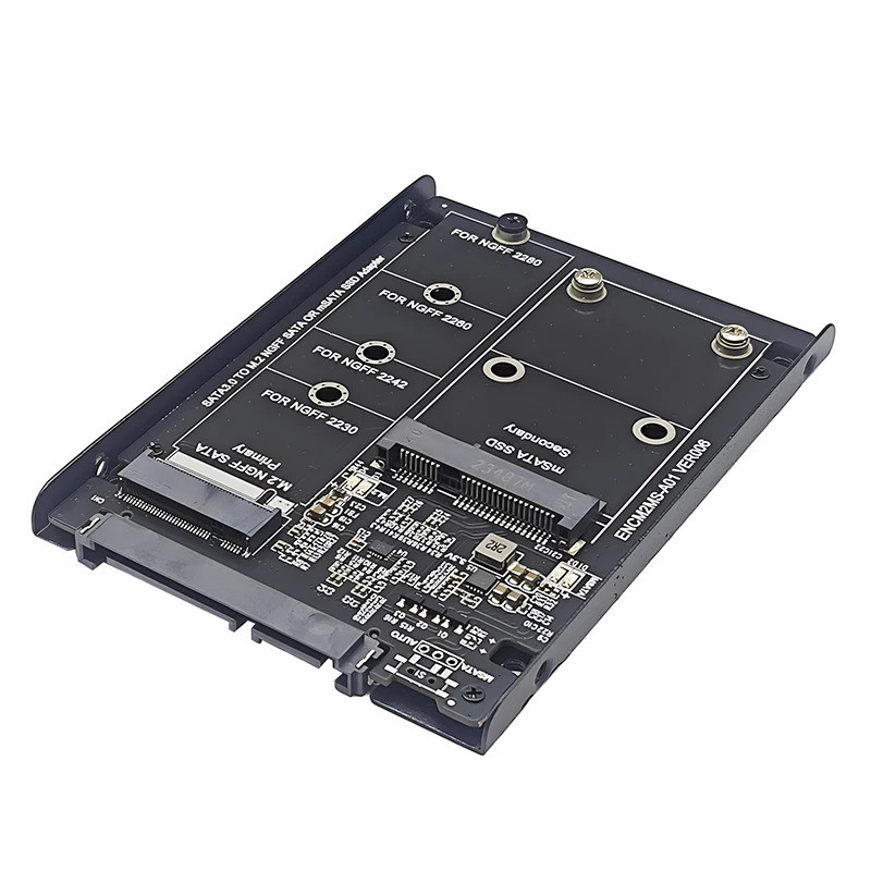 SSD Caso Gabinete M2 SATA MSATA para SATA3.0 6Gb 2.5 "Placa de Riser Adaptador com Soquete de Metal Suporte M.2 SATA SSD mSATA SSD
