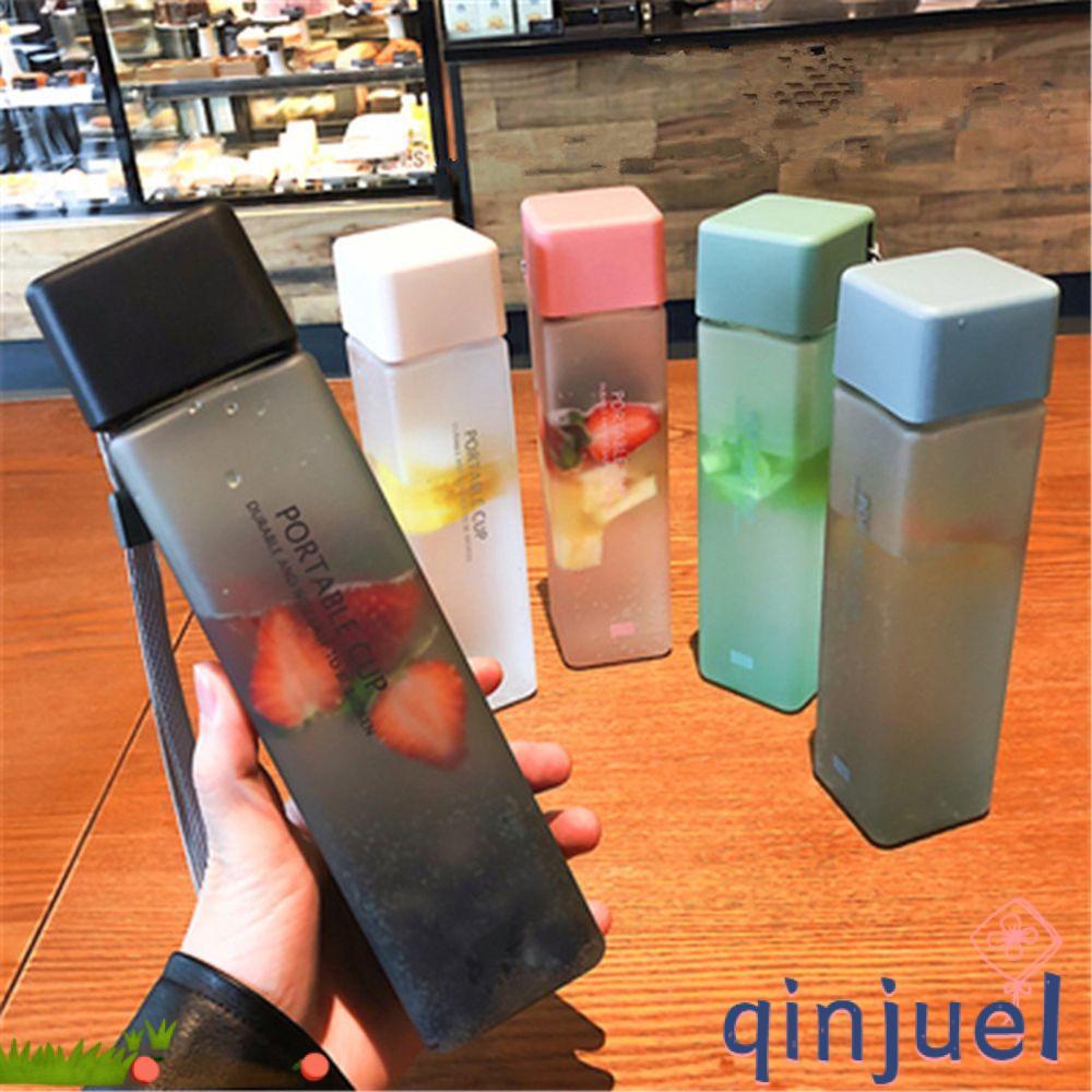 QINJUE Garrafa De Água Portátil À Prova De Vazamentos Com Copo De Plástico Quadrado De Palha Novo BPA Bebedouro Livre Acessório De Ciclismo Ao Ar Jarra De Bebidas Para Acampamento 450ml