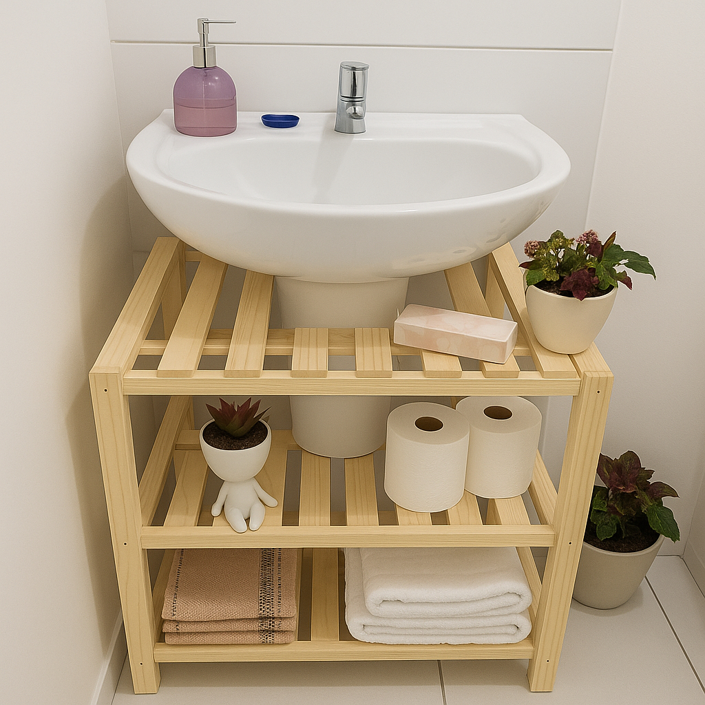 Gabinete Banheiro Estante Coluna Pia 2 Prateleiras Porta Papel Higiênico e Toalhas