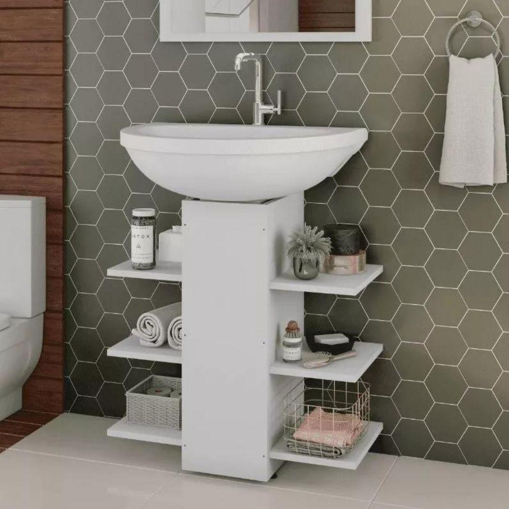 Gabinete Armário De Banheiro Para Pia De Coluna 6 Prateleiras Verçosa Branco Branco