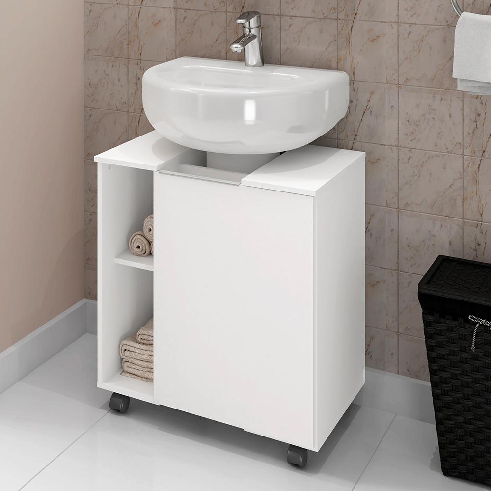 Armario Gabinete Banheiro com Rodinhas para Pia de Coluna 1 Porta Pequin Bechara
