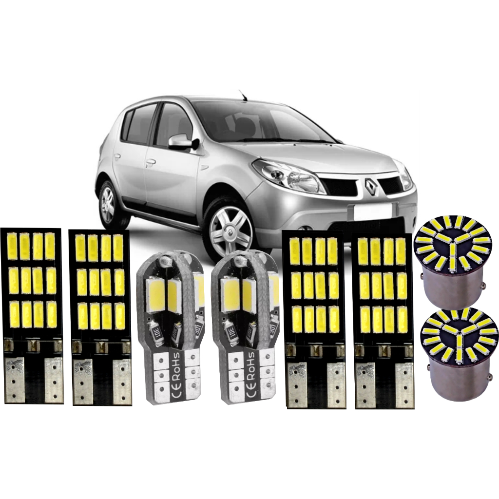 Kit Lâmpadas Led Premium Sandero Logan Teto Placa Ré Farolete