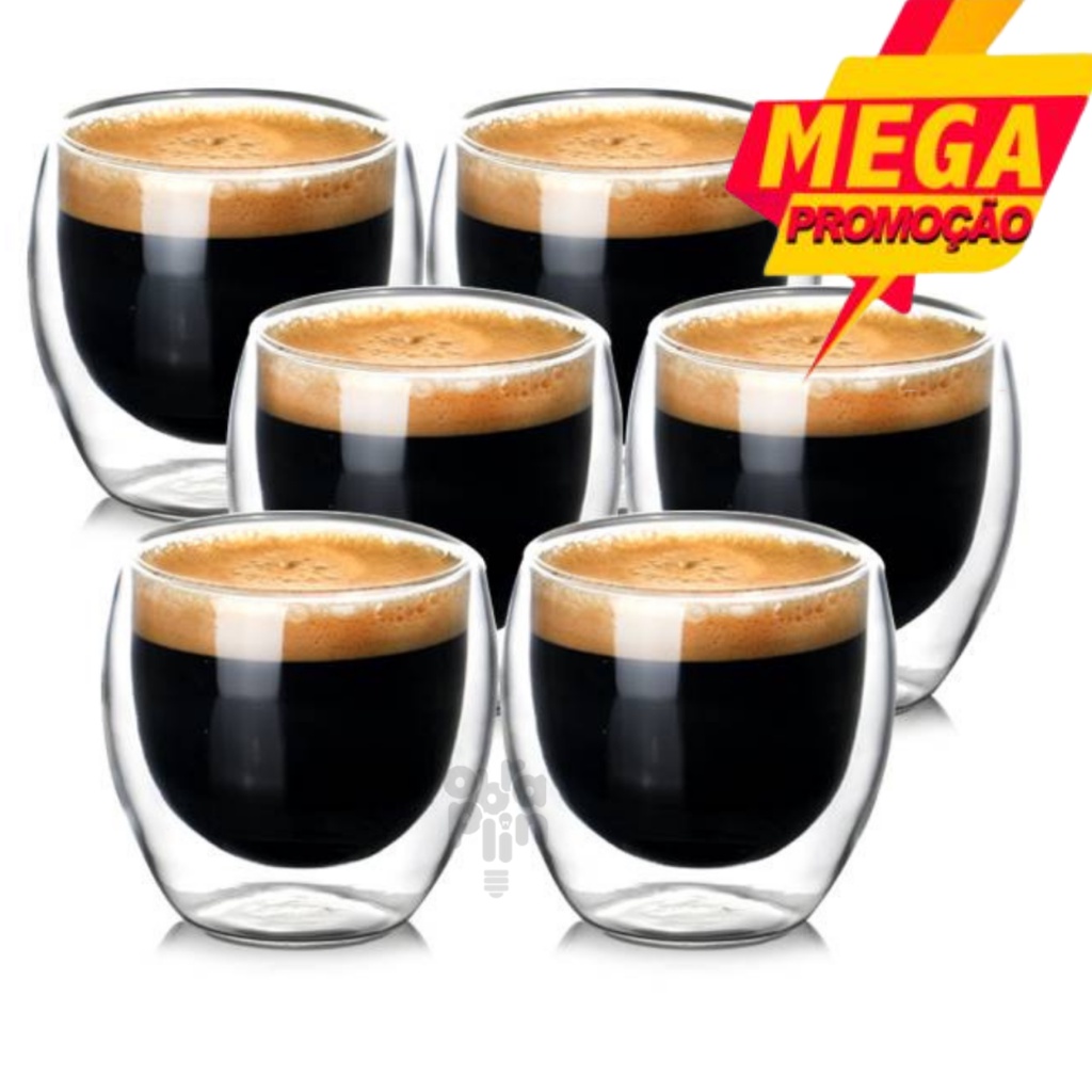 6un Copo Parede Dupla Vidro Duplo Grande 250ml Isolante Térmico Café Capuccino Chá Suco Água Cerveja whisky Chopp Sobremesa Jogo de Copos