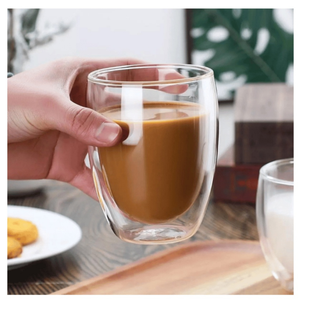 Copo de Vidro Borossilicato Duplo Parede Dupla Isolante Térmico Lindo Moderno Pronta Entrega