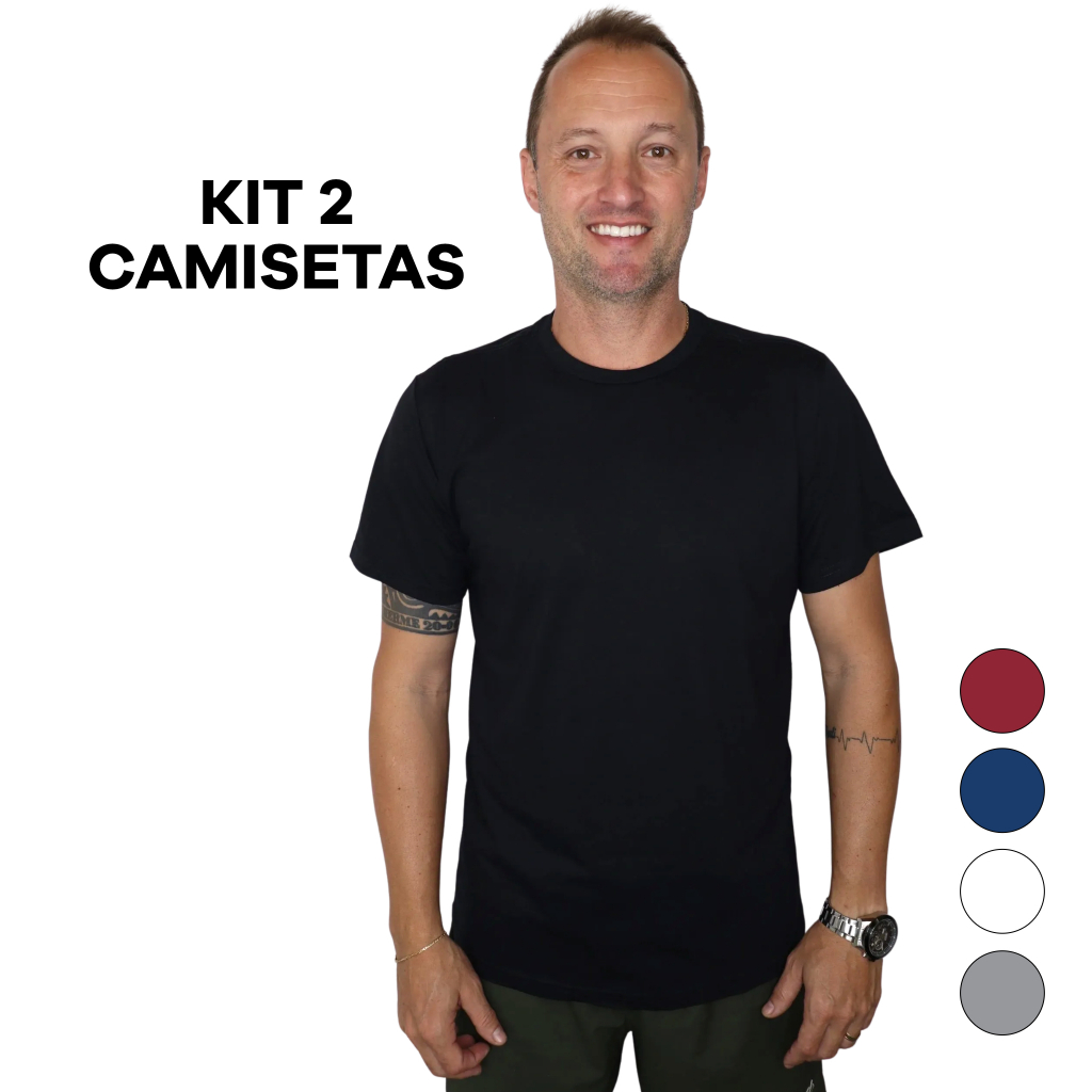 Kit 2 Camisetas Básicas Masculina 100% Algodão Reforço Ombro a Ombro Modelagem Moderna Casual Lisa Fabricação Própria no Brasil - Camiseta Masculina Casual - Dadez
