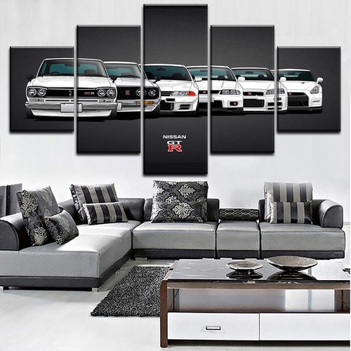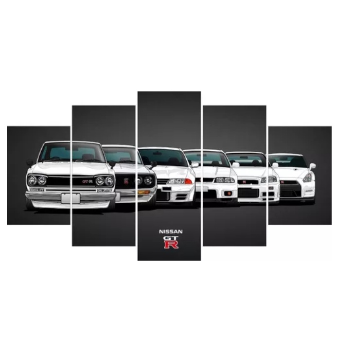Quadro Mosaico 5 Peças Decorativo Carros em Desenho/Nissan GTR/Carros Esportivos
