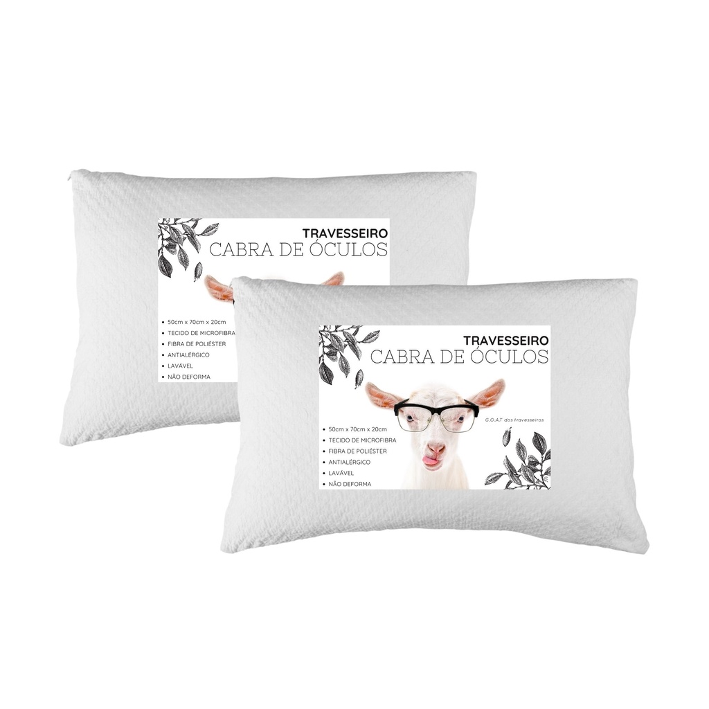 Kit 2 Travesseiros Macios Fibra de Silicone Antialérgica Da Cabra De Óculos 50x70cm Lavável em Maquina