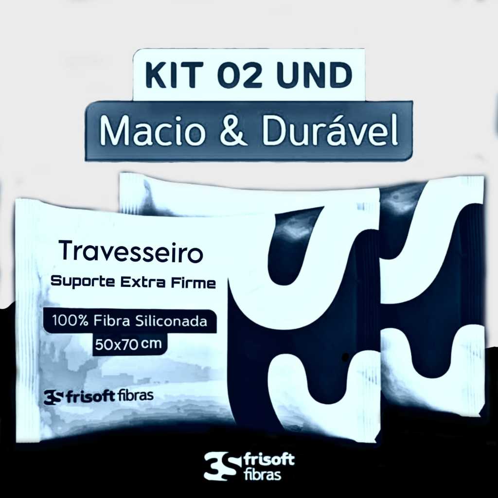 Kit 2 Travesseiros Alto de Fibra Siliconada + Placa de Espuma Soft Massageador - BF Colchões