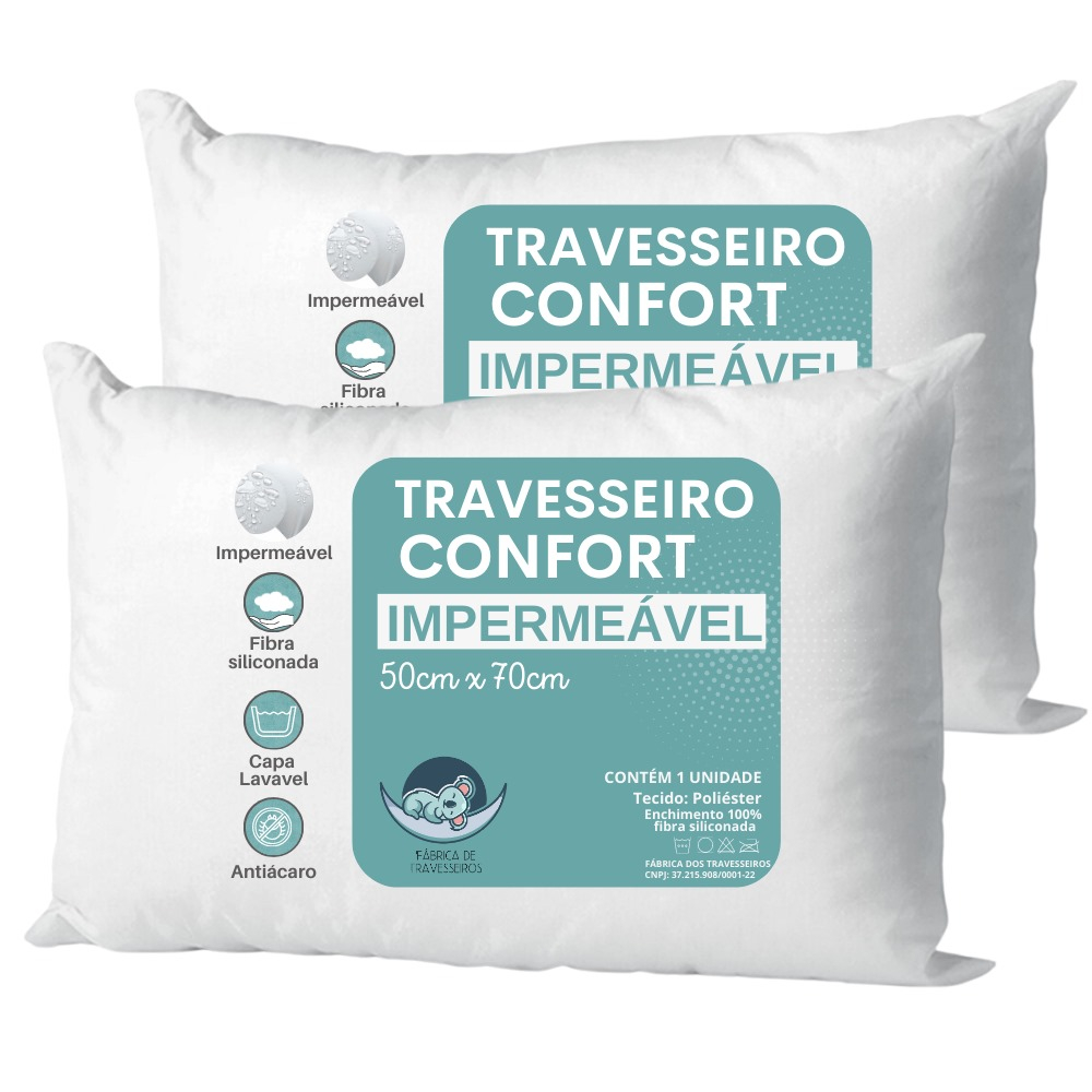kit 2 Travesseiros IMPERMEÁVEL 50x70 100% Fibra De Silicone Antialérgico