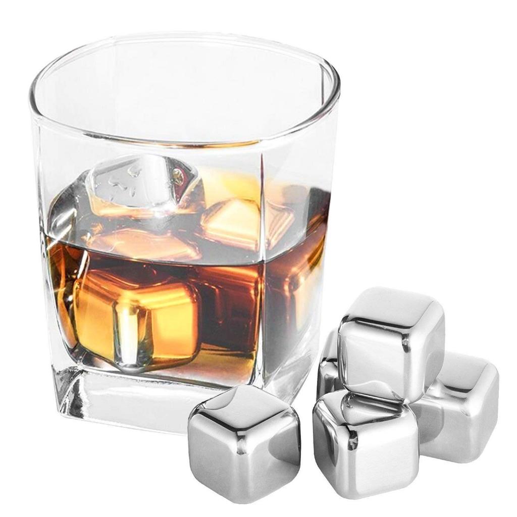 Kit 8 Cubos de Gelo Artificial em Aço Inox Reutilizável Com Pegador