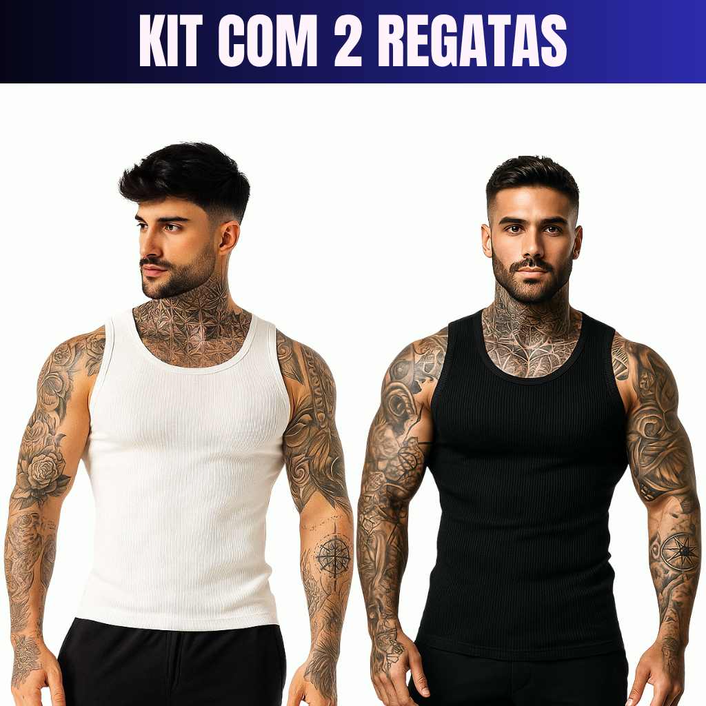Kit 2 Regata Masculina Camiseta Modelo Americano Canelada Básica Lisa
