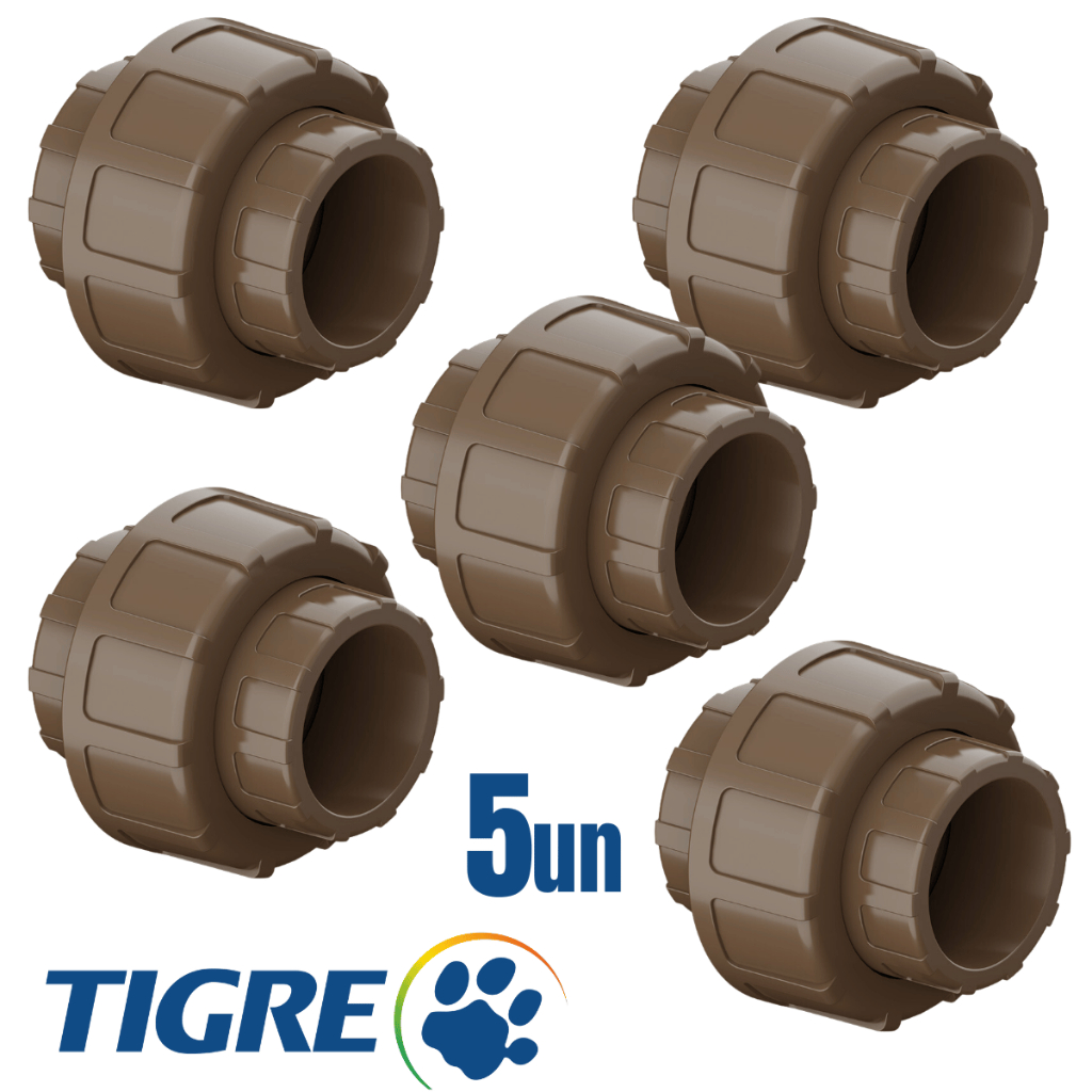 Kit 5 União Soldável 50mm Tigre PVC Água Fria 1,1/2" Motobomba Construção Encanamento Hidraúlica