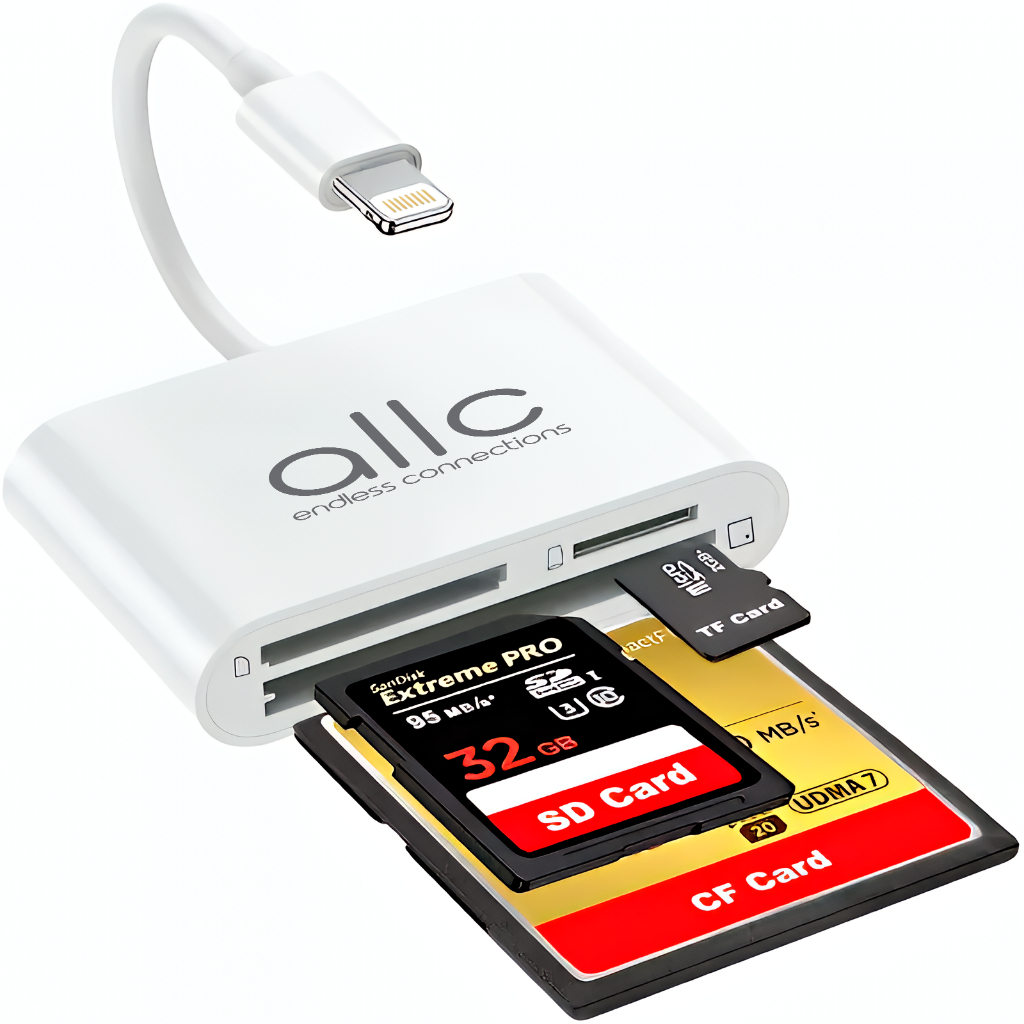 Adaptador Lightning para iPhone iPad Leitor de Cartão SD Micro SD TF CF Compact Flash
