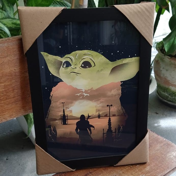 Quadro decorativo com moldura e vidro Darth Vader Star Wars mandaloriano yoda grogu baby yoda