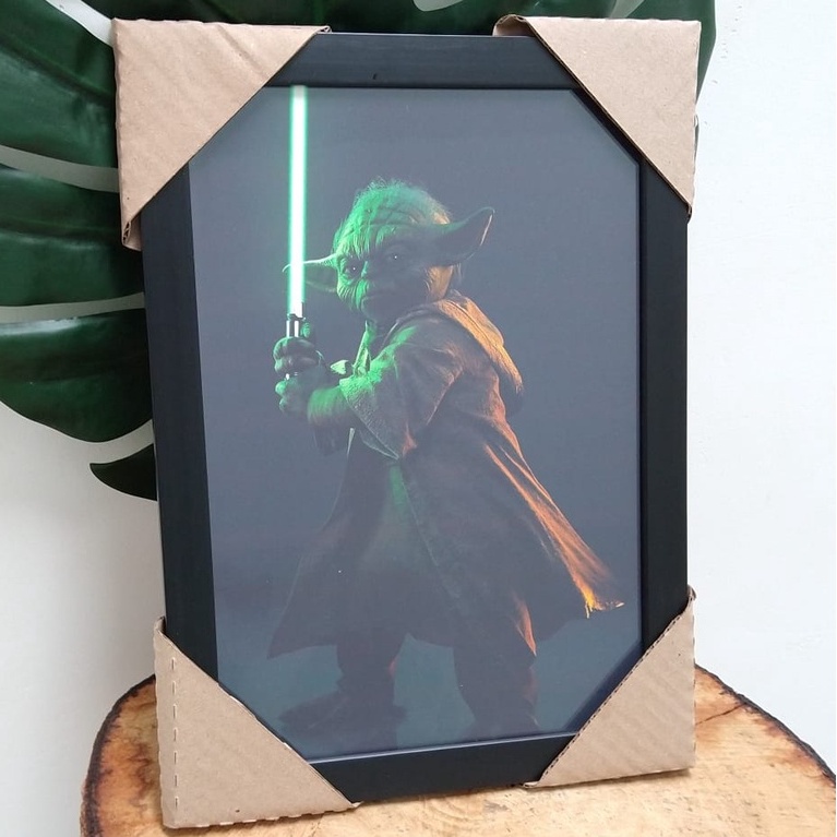 Quadro decorativo com moldura e vidro Star Wars Yoda Jedi darth vader mandaloriano pôster geek