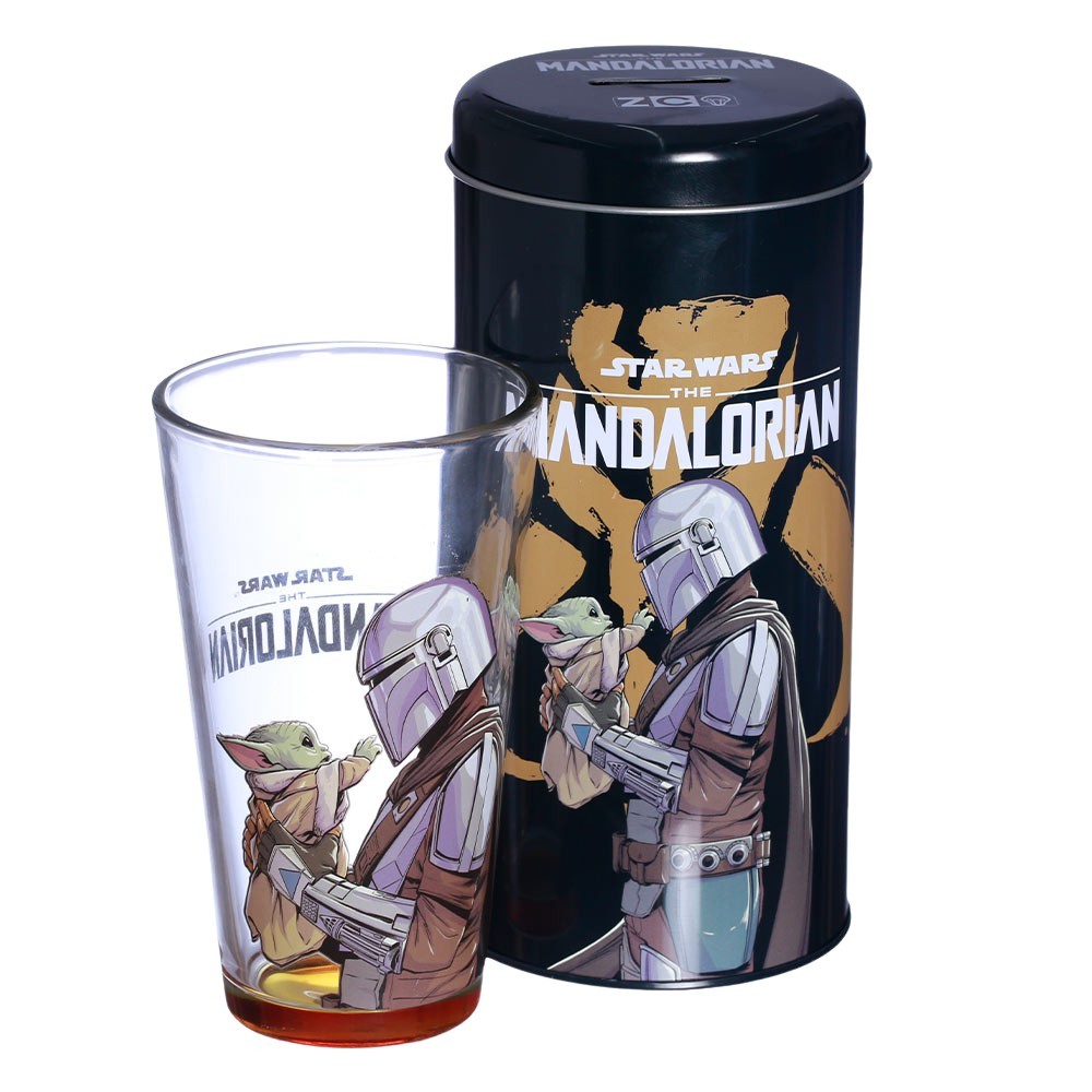 Baby Yoda E Mandaloriano Kit Copo De Vidro 500ml + Cofre Metal Oficial Star Wars