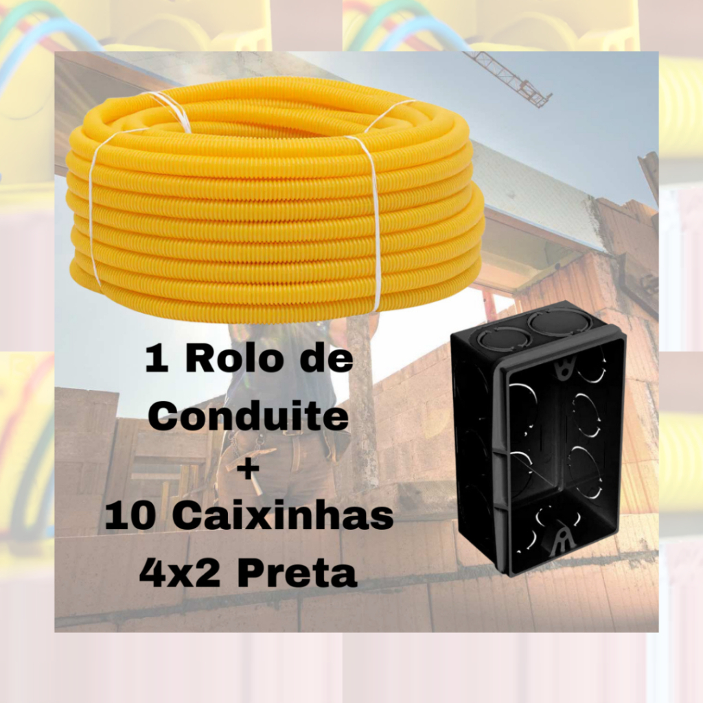 Kit Conduíte Corrugado 3/4 Amarelo + 10 Caixinhas 4x2 preta