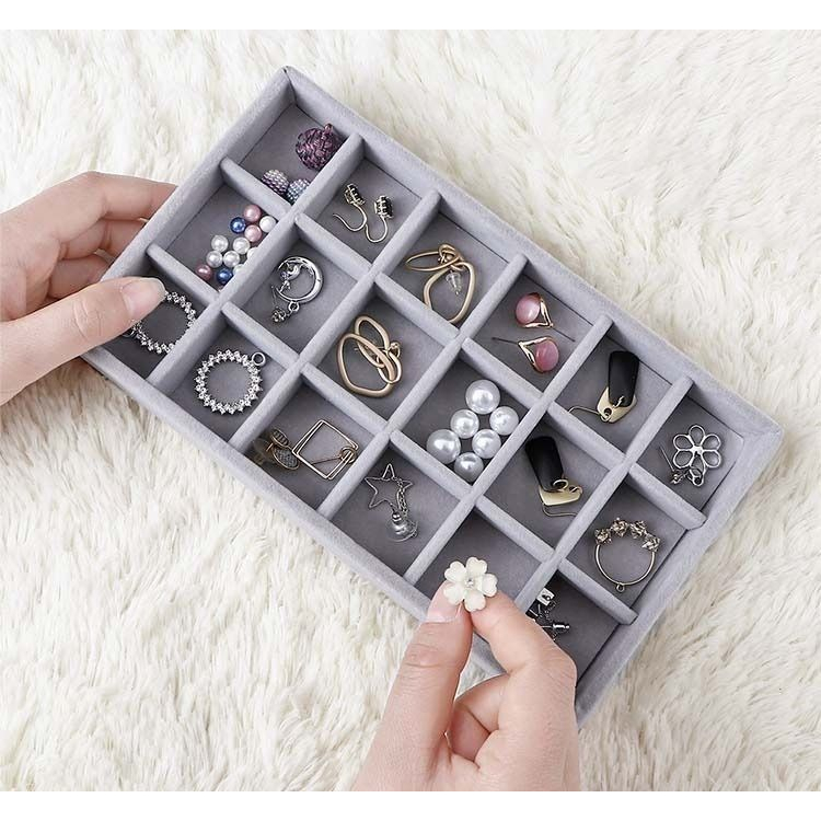 Bandeja Organizadora De Jóias Empilhável Bandejas Organizadoras Veludo Para Gavetas Expositora Grande Brincos Cômoda Colar Pulseira Anel Expositor Organizador Conjunto Menina Feminina