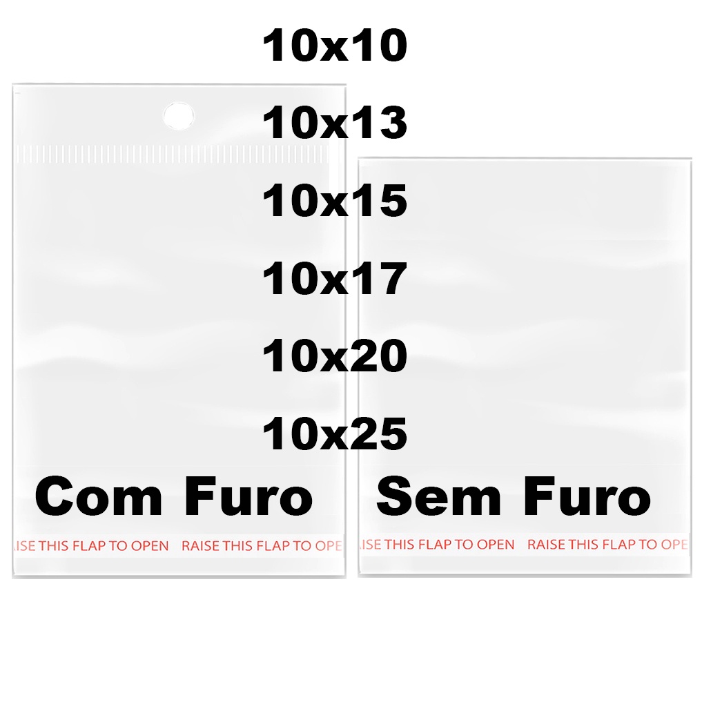 kit 100 Saco Adesivado MAIOR Saquinho Transparente Plástico furo 6x6 6x7 6x9 6x10 6x11 6x13 6x20 6x25 6x40 6X12 6X14 6X15