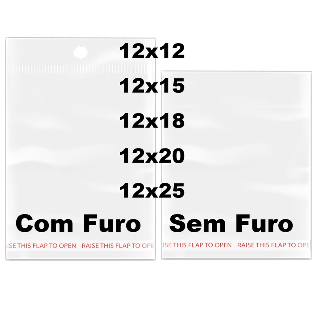kit 200 12x18 kit 100 Saco Adesivado Saquinho Transparente Plástico com furo sem furo 12x12 12x20 12x25 12x15