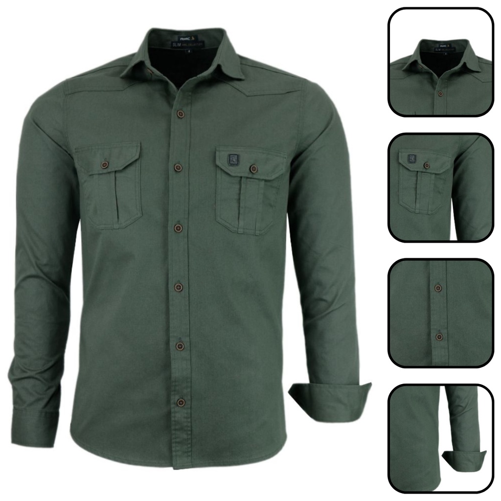 Camisa Social Manga Longa Masculina Slim Fit Estilo Militar