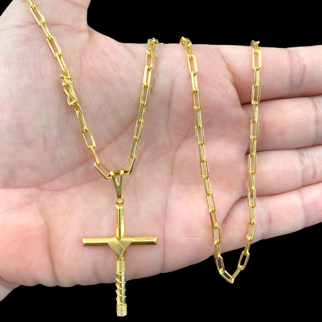 Corrente Cordão Moeda Antiga Banhado a Ouro 18k 3,5 mm/ 70 Cm+ Pingente Crucifixo (1 ano de garantia)
