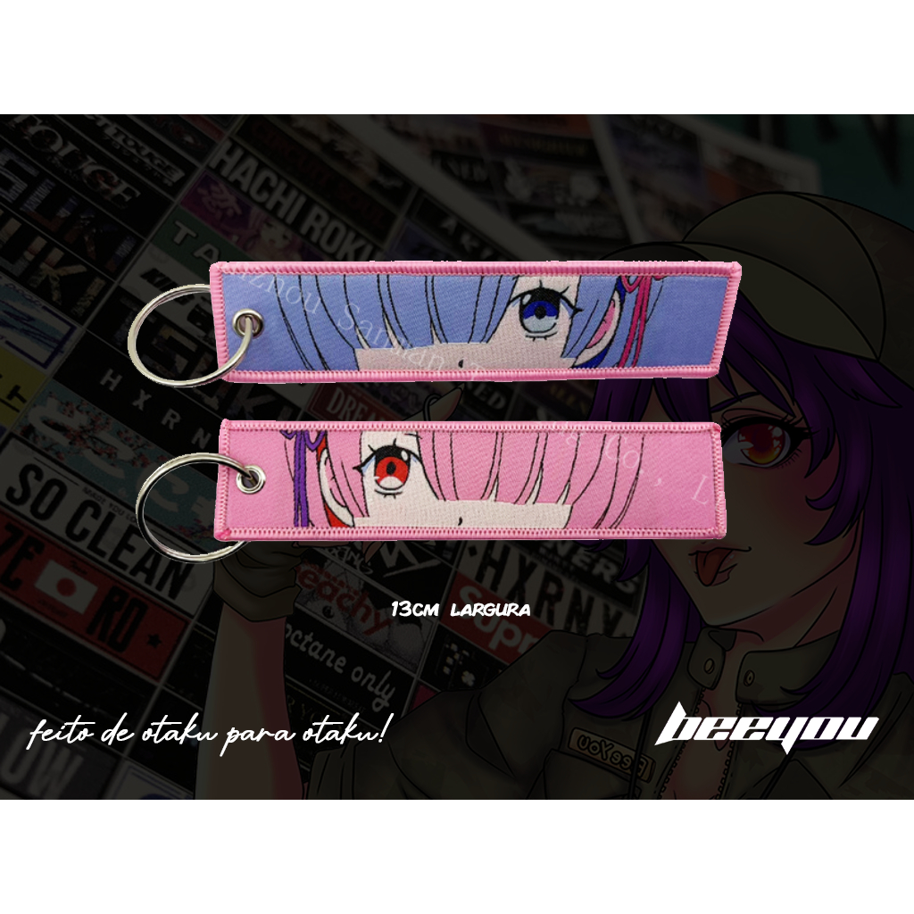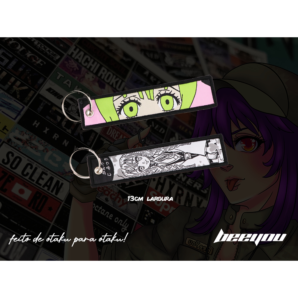 CHAVEIRO ESTILO JETTAG COM PERSONAGEM DE ANIME (NEZUKO KAMADO, REM E RAM RE ZERO, YUMEKO JABAMI, DENJI)