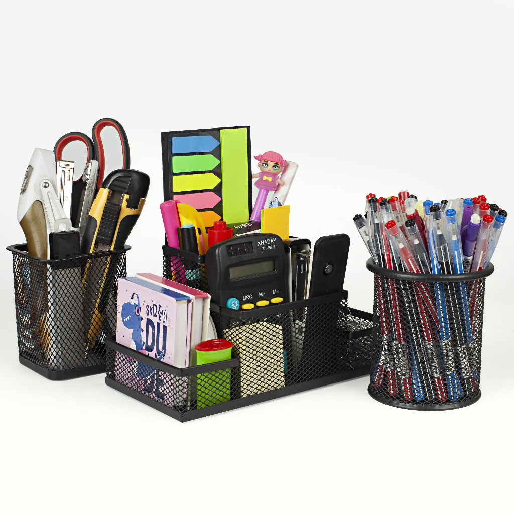 Porta Lápis + Porta Treco Organizador de Mesa de Escritório Kit caneta metal aramado