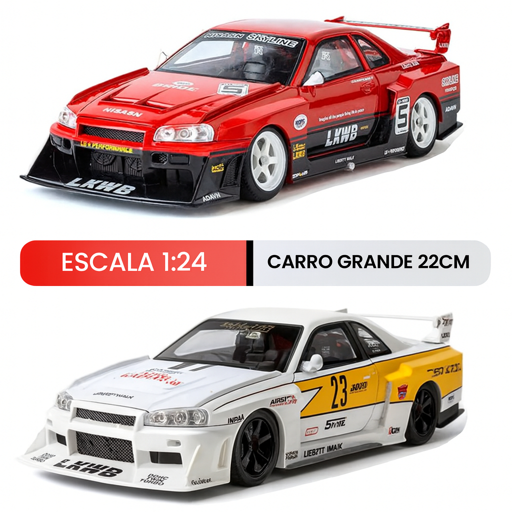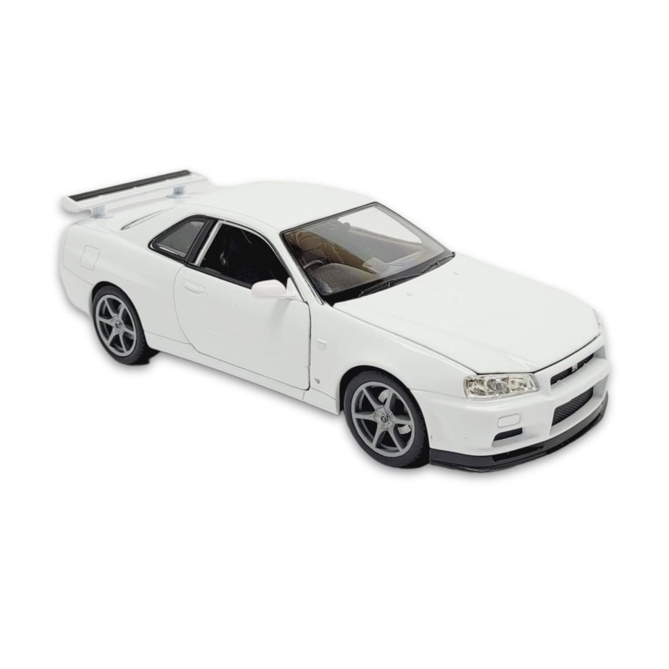 Brinquedo Carrinho de Metal Miniatura Nissan Skyline GT-R R34 1:24 com Luz e Som