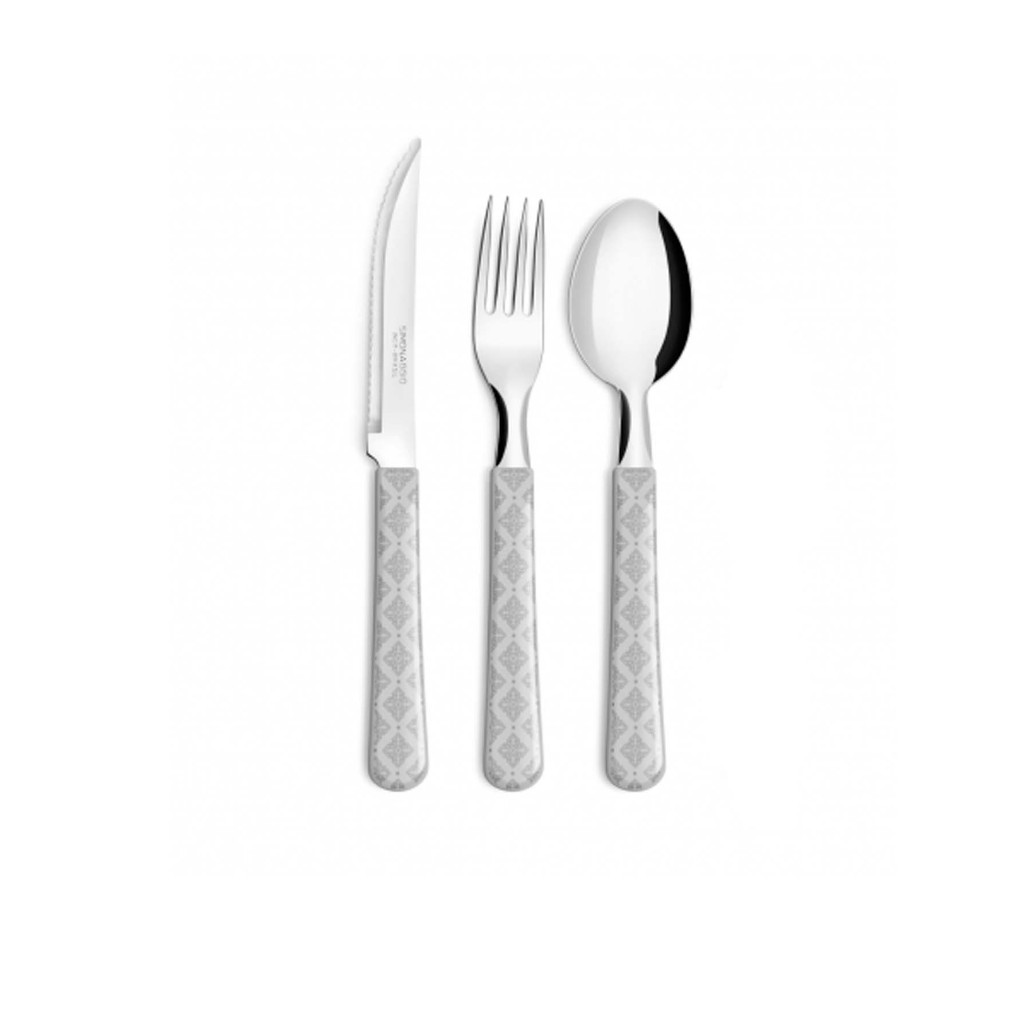 Kit Jogo Conjunto De Talheres Em Aço Inox 25 Peças Colher Garfo Faca Cinza