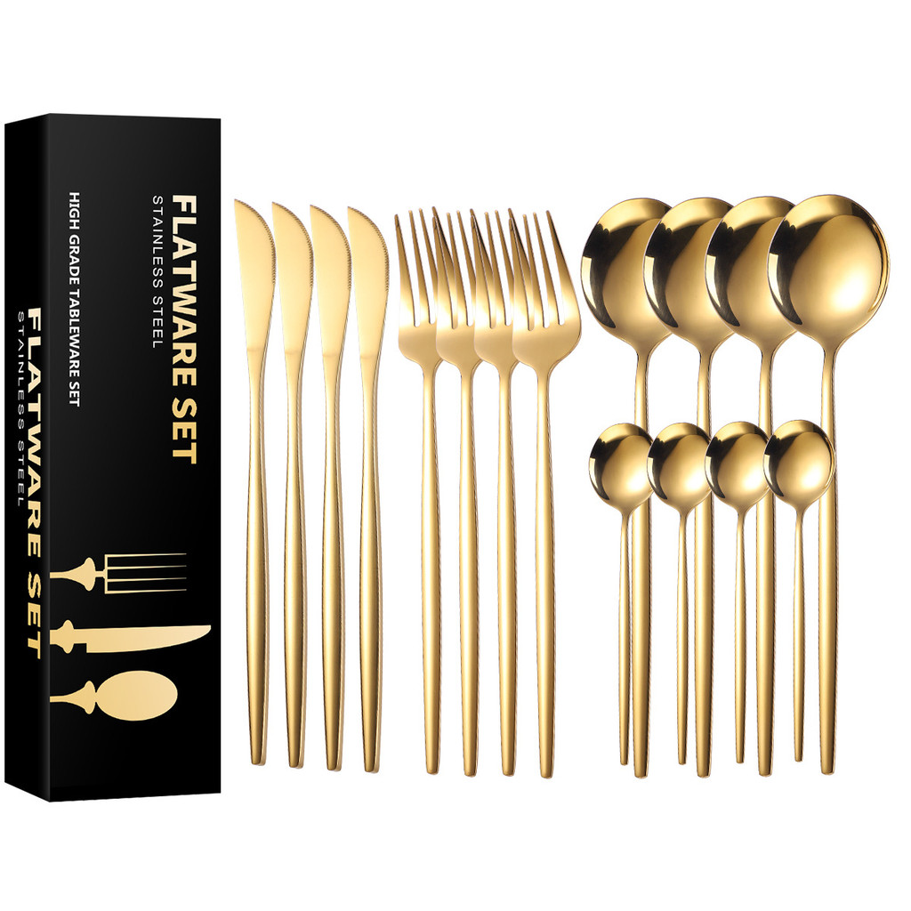 MODUS Finas Kit 24 Peças Talheres Ouro De Aço Inox Jogo De Talheres Garfo Ou Faca Ou Colher De Café Para Uso Em Residências E Restaurantes
