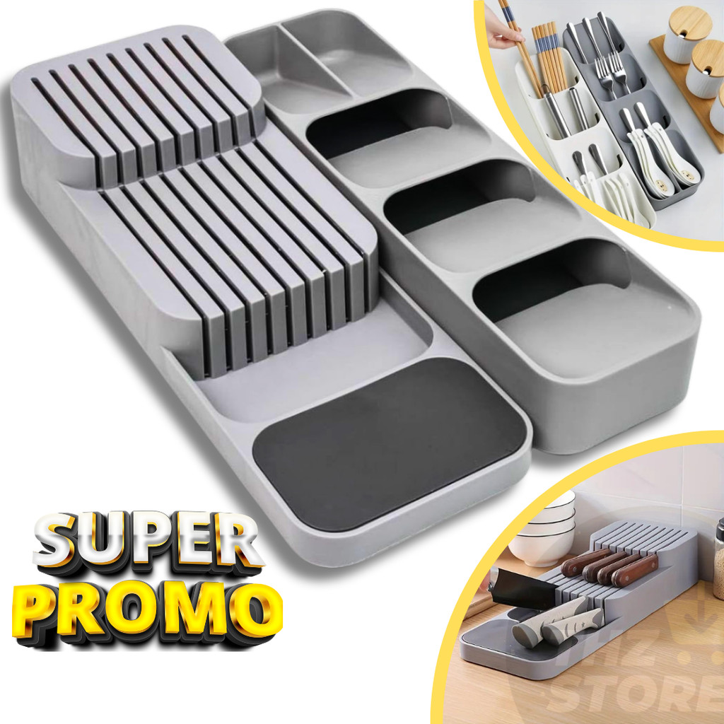 Kit Organizador de Gaveta Porta Talheres Facas Cozinha Suporte Separador Divisória Colher Garfo Cepo