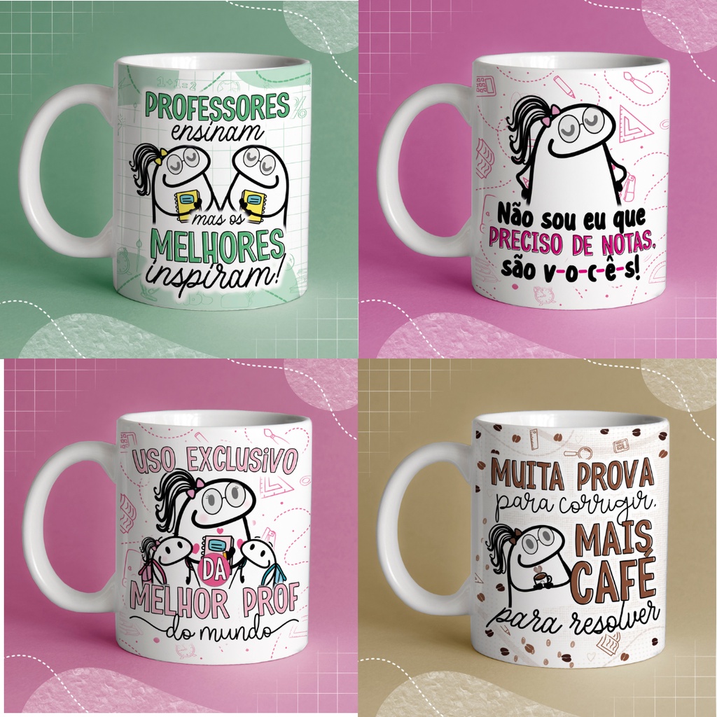 Caneca Professora Porcelana Flork Vários Modelos Personalizada Bento Personalizada Dia dos Professores Ideal para Cesta Presente Lembrancinha Enfeite