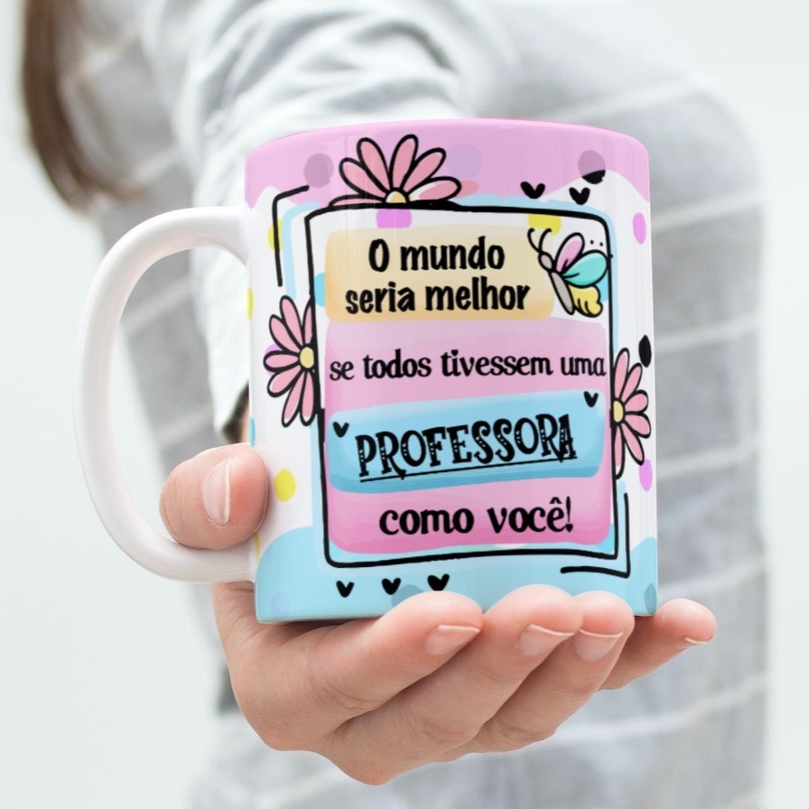 Caneca Porcelana para Professora est.48 - O mundo seria melhor se todos tivessem uma professora como você - Dia dos Professores ZLprint