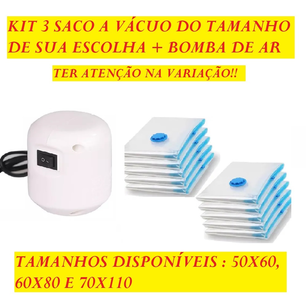 KIT 3 Saco A Vácuo E Bomba 110V De Ar Elétrica 70x110 Ou 60x80 Ou 50x60Cm Para Armazenar E Guarda De Maneira Mais Fácil E Prática