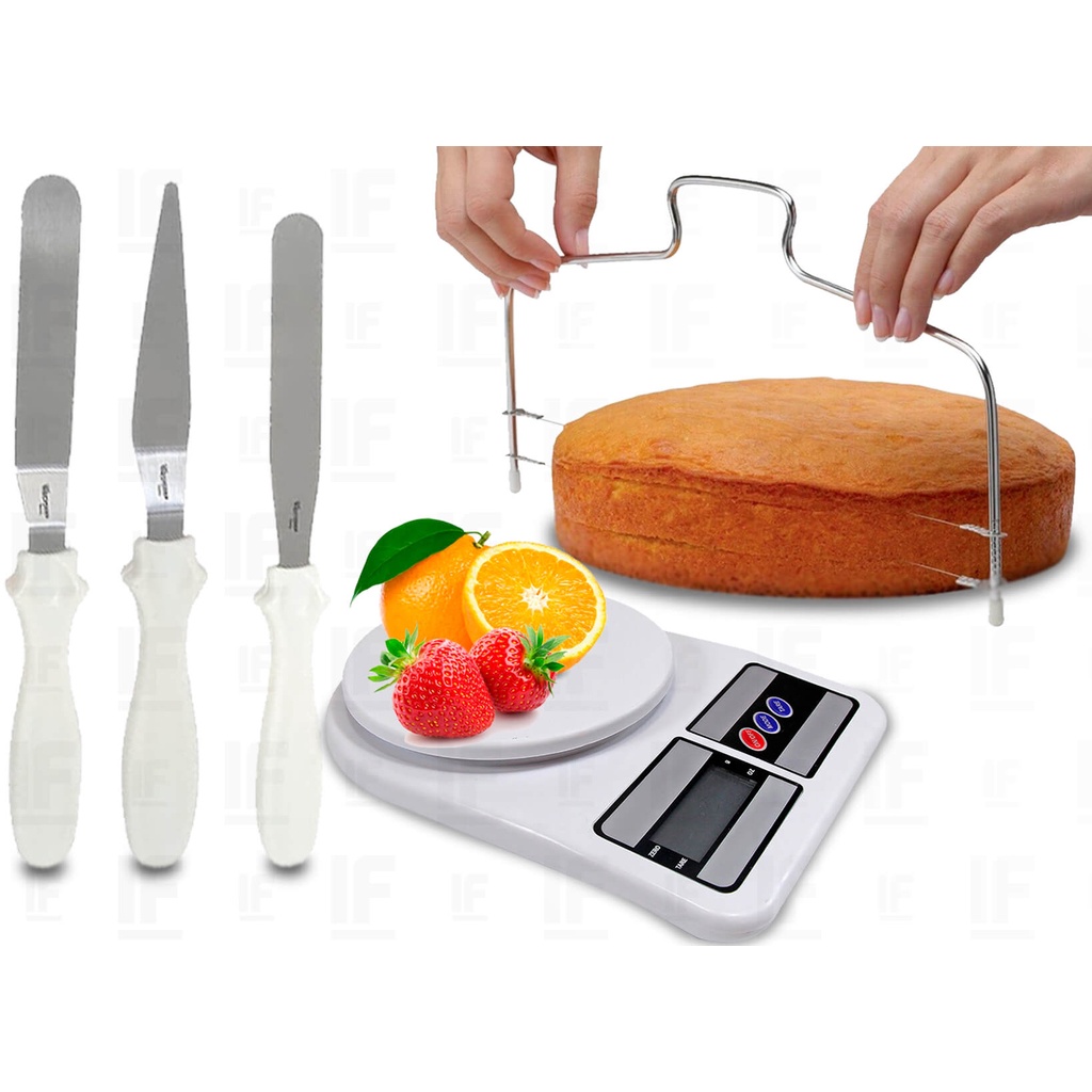 Kit Nivelador De Bolo Confeitaria Cortador + Balança Digital