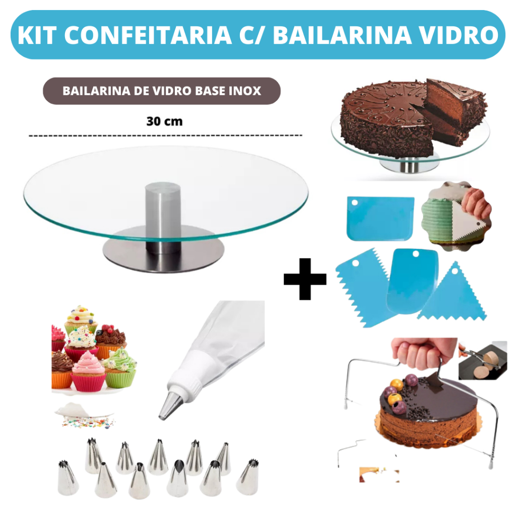 Kit Confeitaria Bailarina De Vidro Nivelador Bico de Confeitar Espátula Niveladora Raspadora Profissional Completo