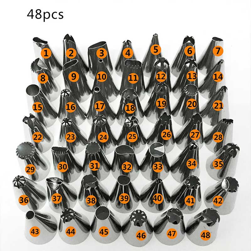 48Pçs 304 aço inoxidável confeitaria bico de confeitar kit de confeitaria forma bolo