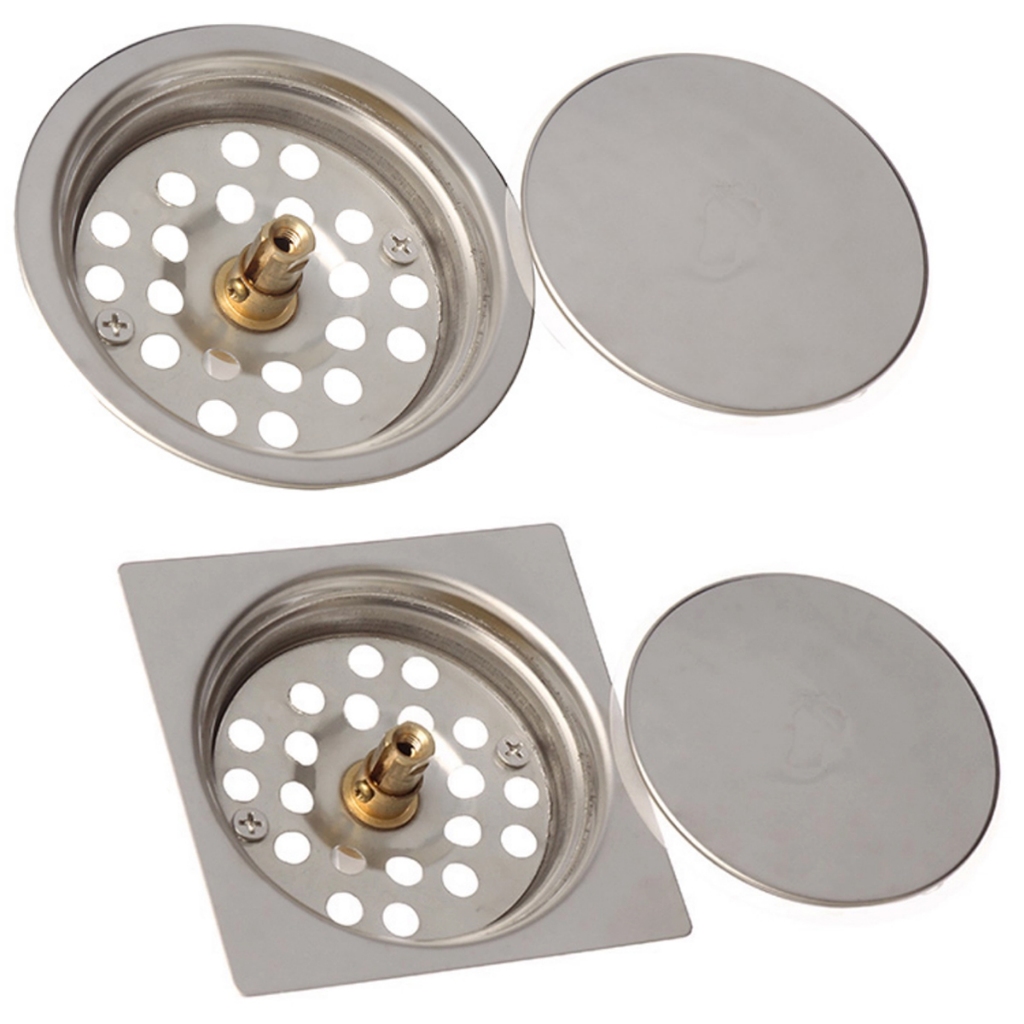 Ralo De Banheiro Click Inteligente 9,4 x 9,4cm - 15x15cm Redondo e Quadrado Inox Cromado e Grafite