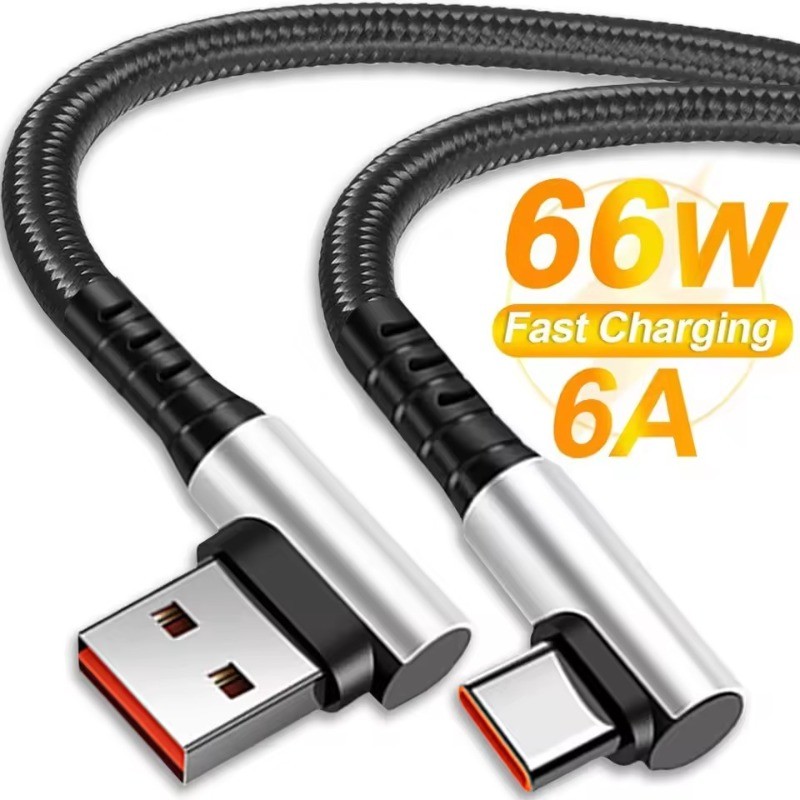 Cabo De Carregamento Turbo 120W 6A 67W Carregador USB Rápido Tipo C Para xiaomi samsung Cotovelo 90 Graus 1.2M 1.8m