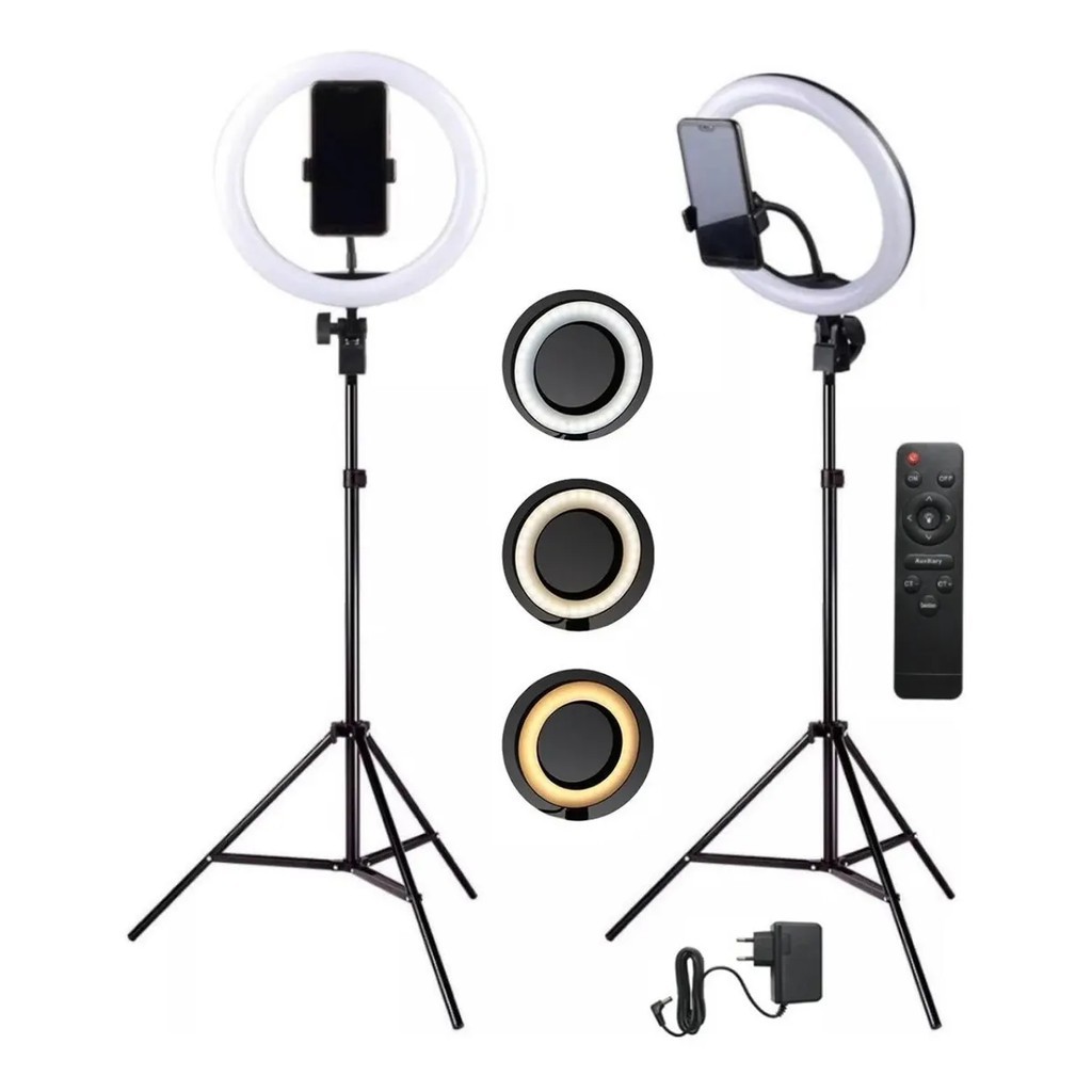 Kit Ring Light Grande 12 Polegadas com Tripe 2,10mt + Ring Light 8 Polegadas Pequeno de Mesa