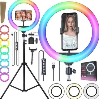 Ring Light Colorido 10 ou 18 Polegadas 45cm com Tripe 2,10mt - Kit YouTuber RGB