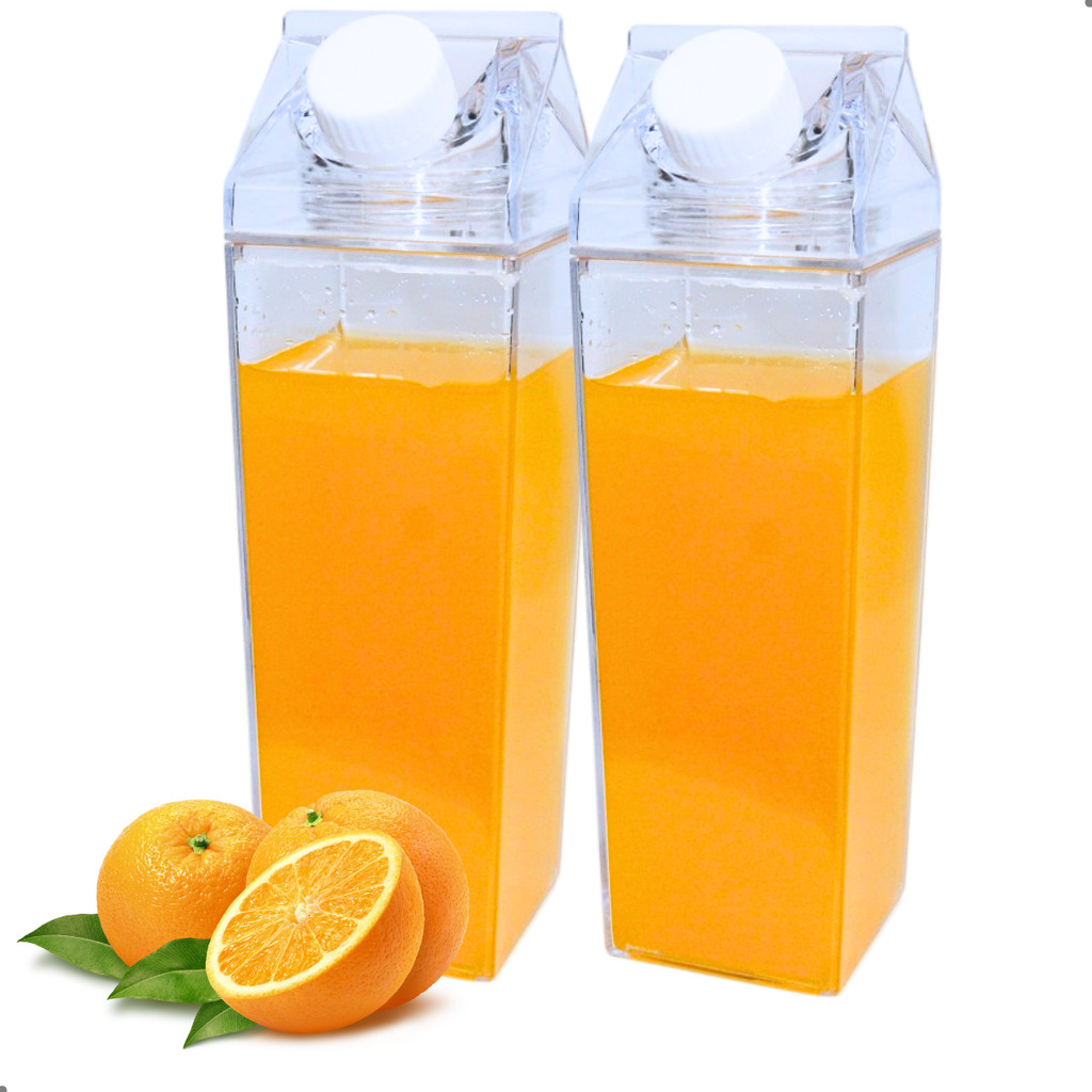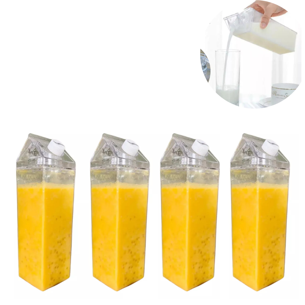 Kit 4 Garrafa Formato Caixa De Leite Suco Água Acrílica 500ml Plástica Grande Geladeira Transparente Garrafinha