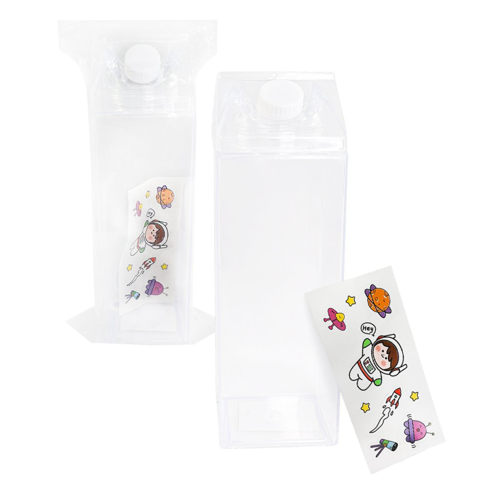 Kit 5 Garrafa Transparente Plástico Acrílico Em Formato Caixa De Leite 500 ml Sem BPA