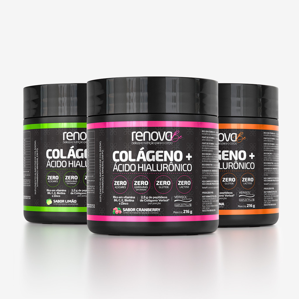 Kit 3 Colágenos Renova Be com Ácido Hialurônico Haplex Plus Verisol e Biotina