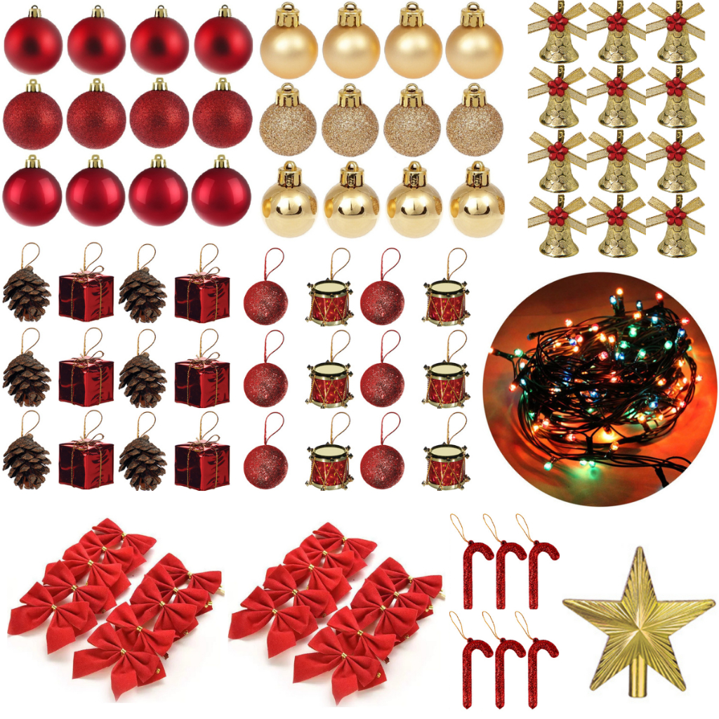 Kit 72 Enfeites de Árvore De Natal Decoração Bolinha e laços
